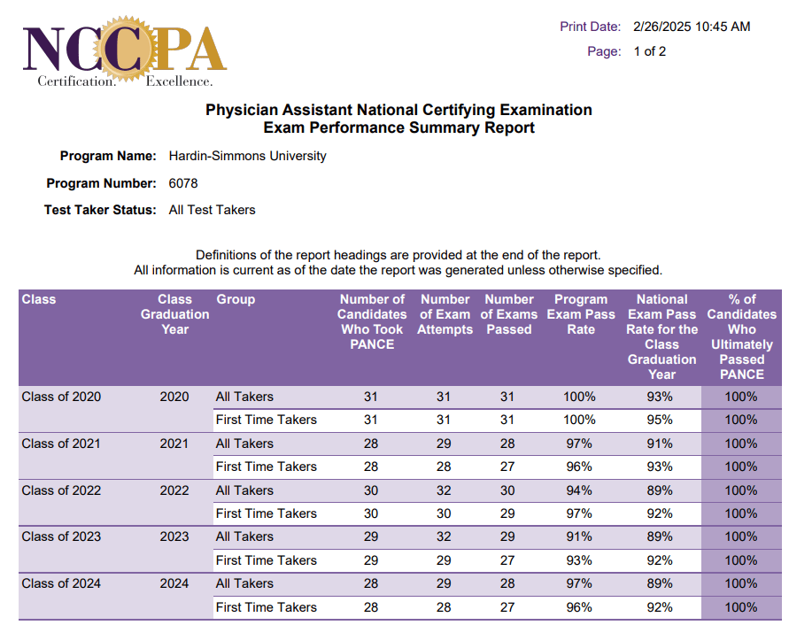 The program’s accreditation history can be viewed on the ARC-PA website at https://www.arc-pa.org/accreditation-history-hardin-simmons-university/