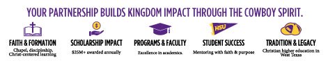 Since 1891, Hardin-Simmons University has made a Kingdom impact by providing excellent education enlightened by Christian faith and values. There is so much of which to be proud, and our Engagement and Advancement Team is grateful to be part of this Kingdom work.